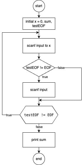- รับ input ตัวเลขมาบวกกัน จนกว่า input จะเป็น EOF จึงจะแสดงผลบวกของตัวเลขทั้งหมด