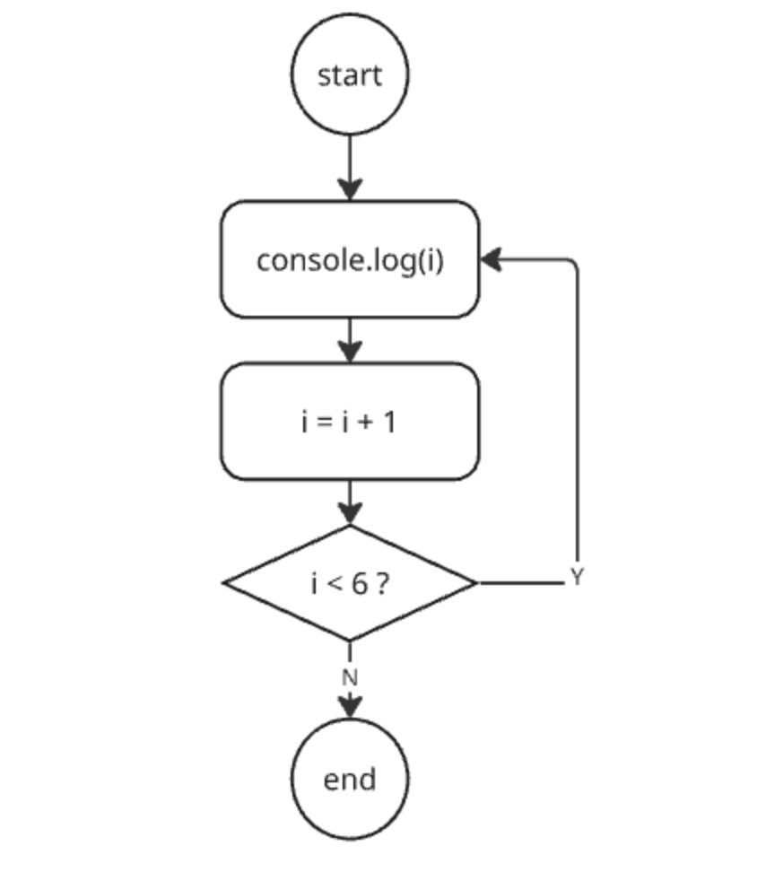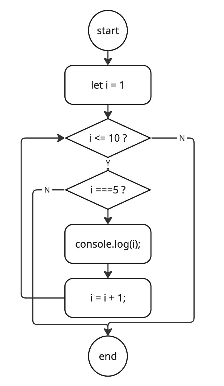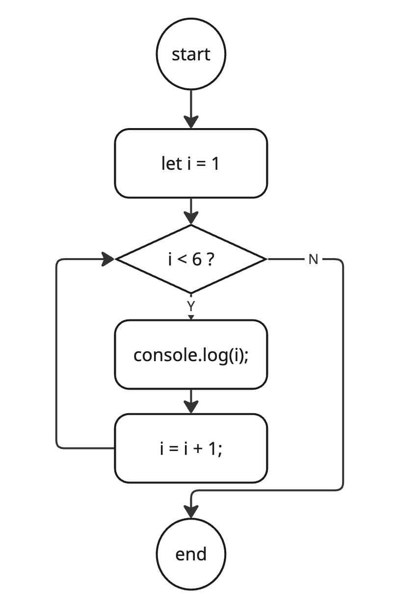 for (let i = 1; i <= 5; i++) {
