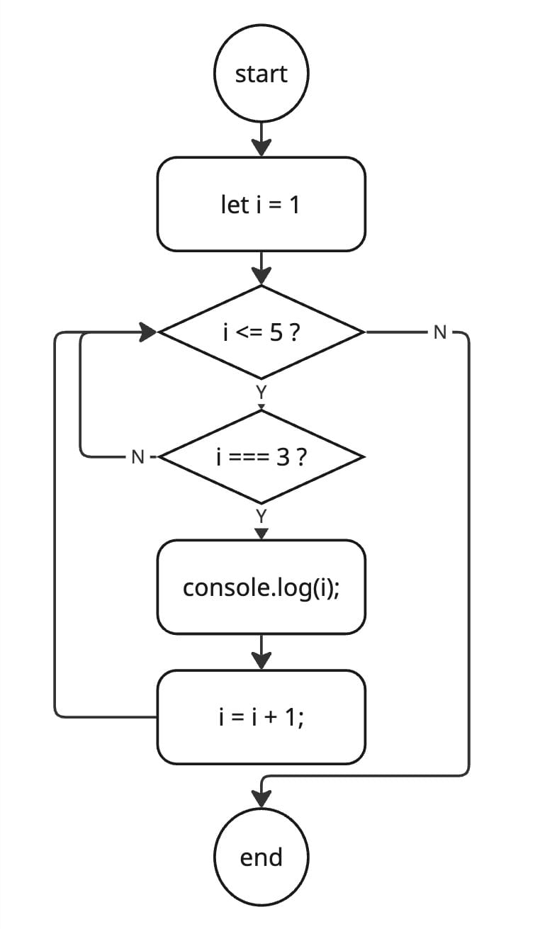 for (let i = 1; i <= 3; i++) {