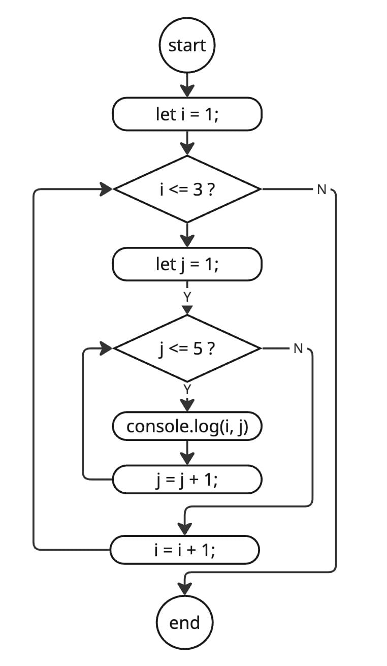 for (let j = 1; j <= 3; j++) {
