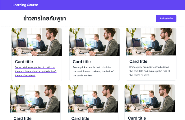 results.descriptionถ้า description ของ news ยาวเกิน 4 บรรทัด ให้ตัดการแสดงผลหลังจากนั้นให้ แสดงผล... - มีปุ่มโหลดข้อมูลใหม่ บนขวาของหน้าจอ
