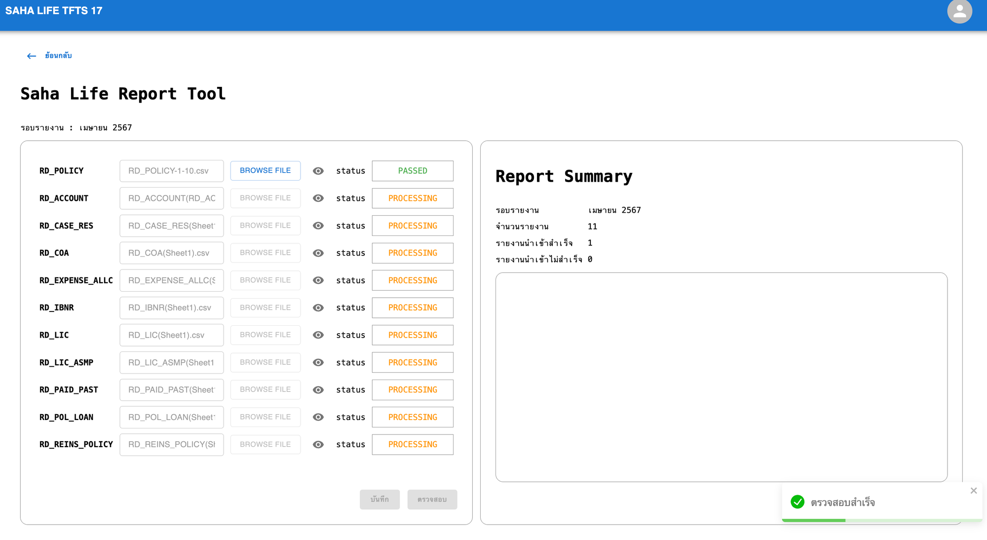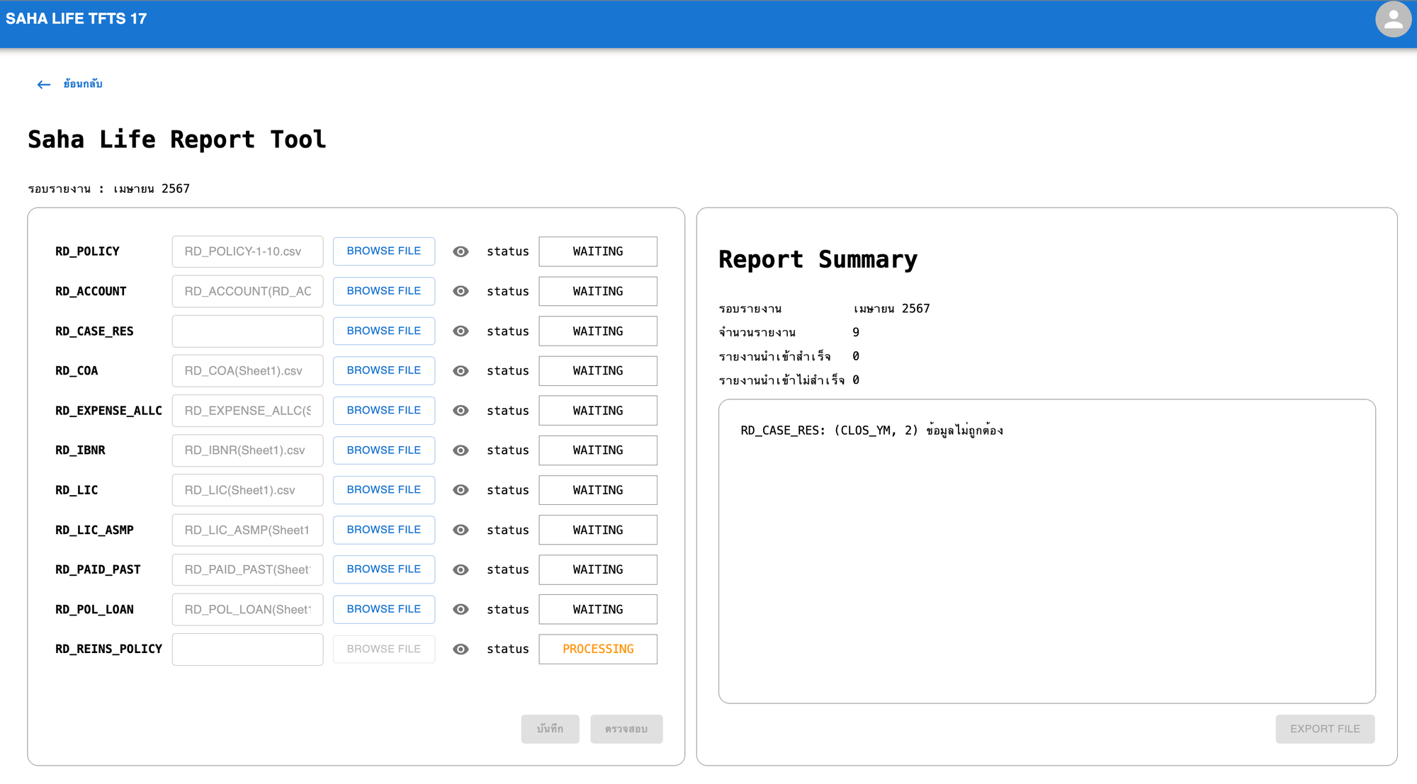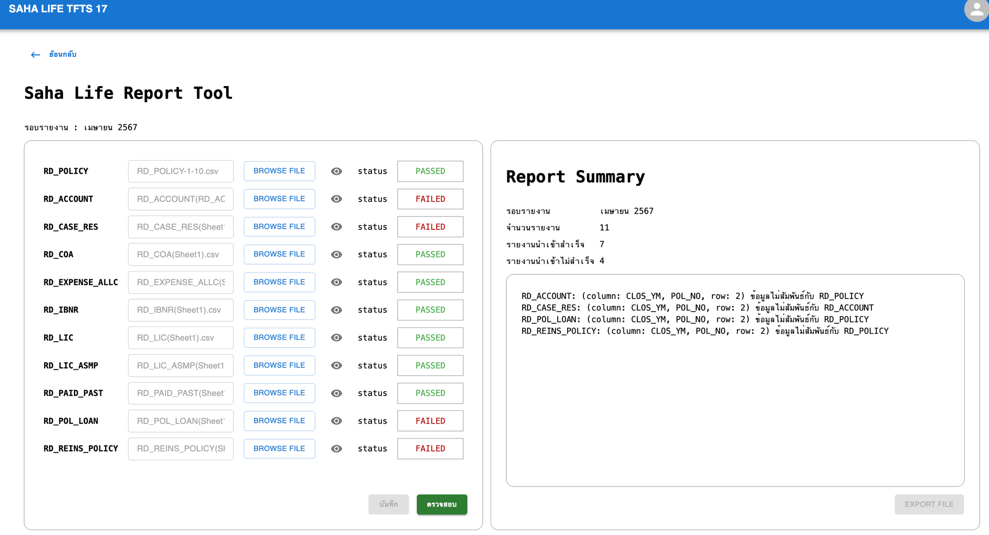 Developed a web-based application to support bulk report uploads from multiple departments. The system includes backend processes for report assessment, verification, and correction, as well as cross-report relationship validation. The outcome is a consolidated report used to confirm the accuracy and completeness of reports for the given period