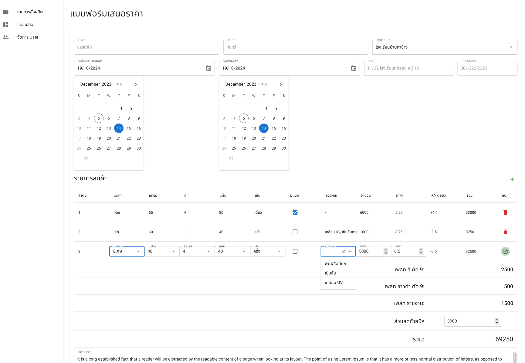 - Support offer quatation and calculating price of each tier of user