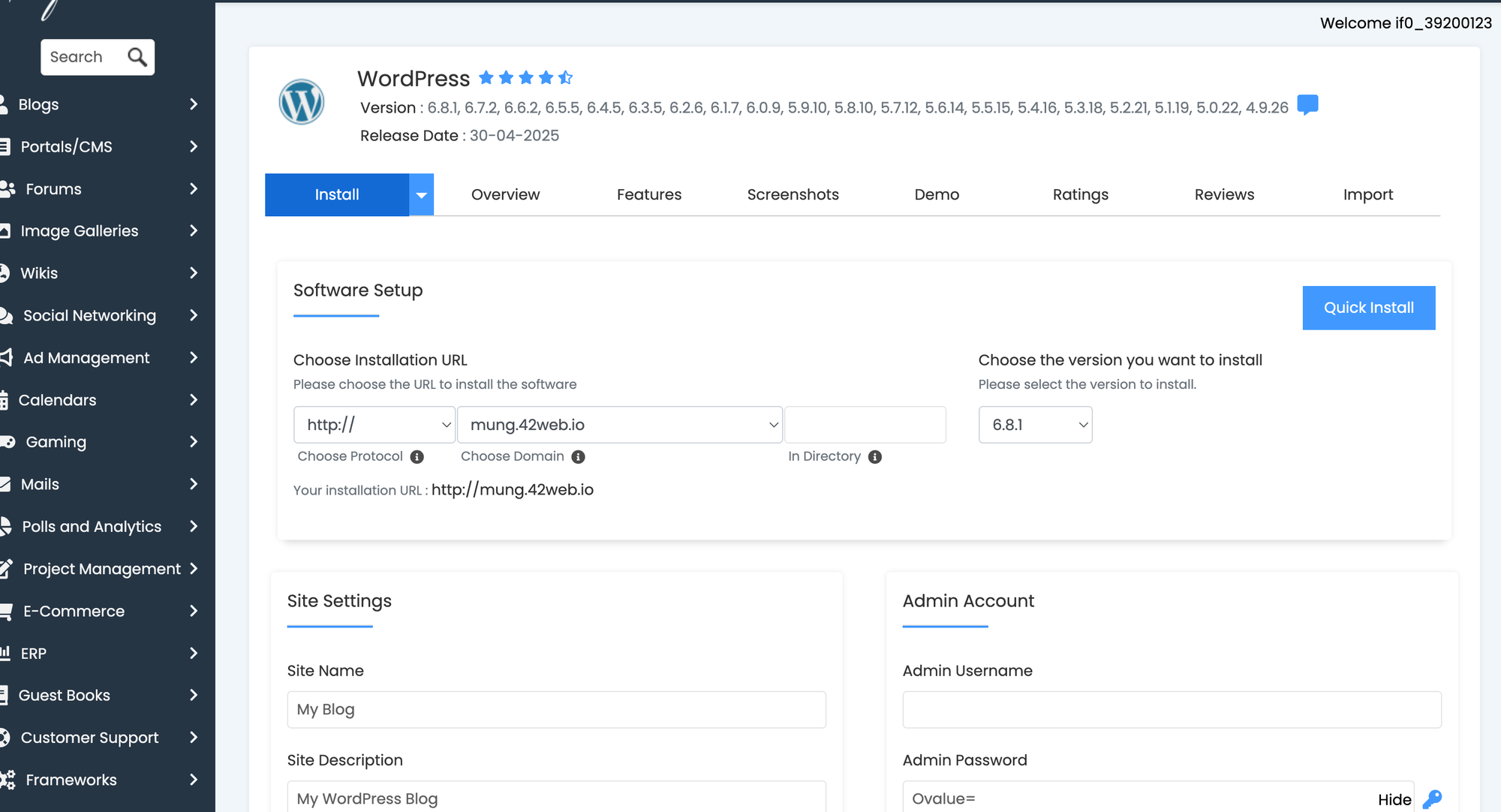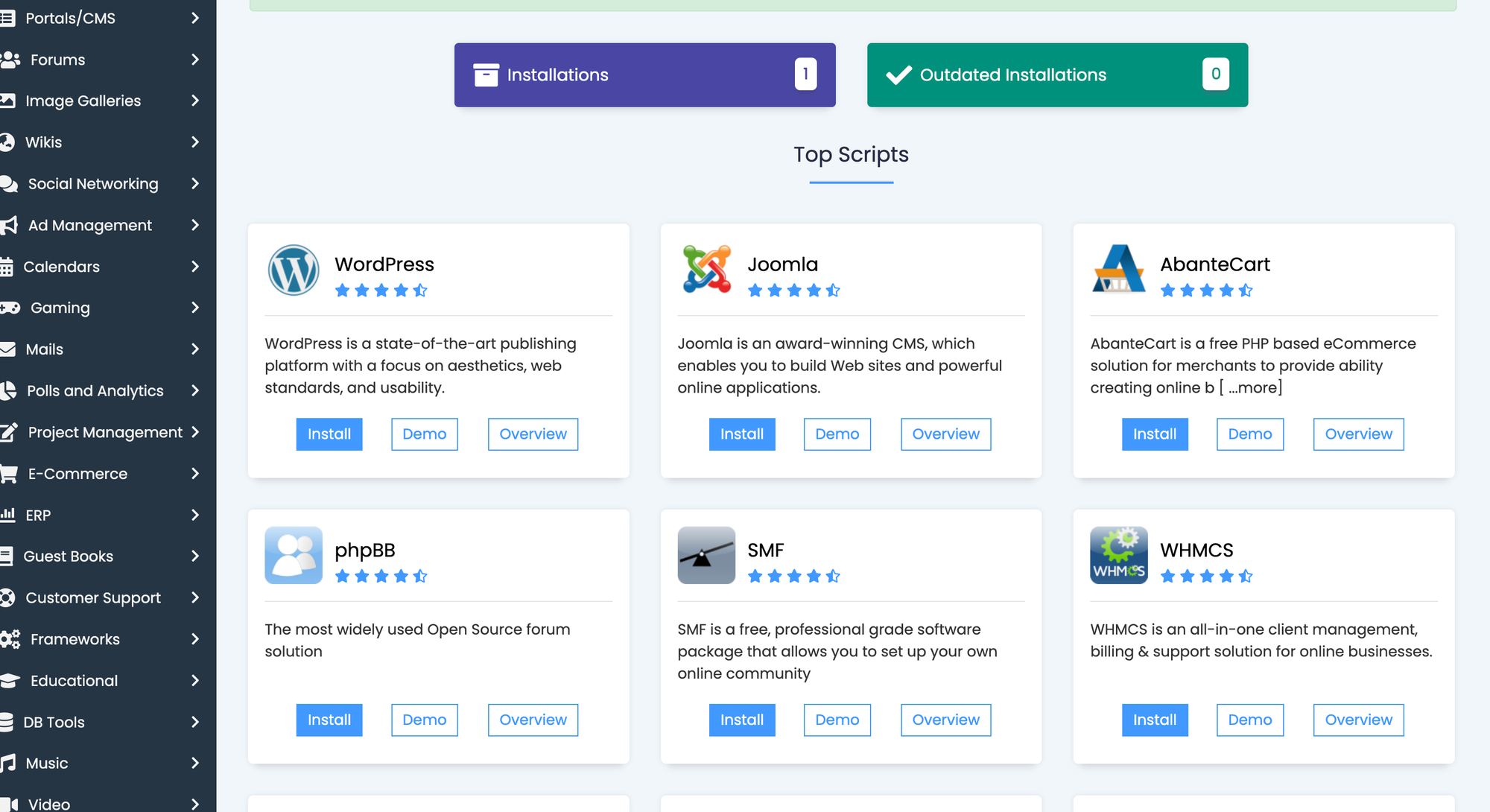 - ใน cPanel เลื่อนลงไปหาเมนู Softaculous Apps Installer